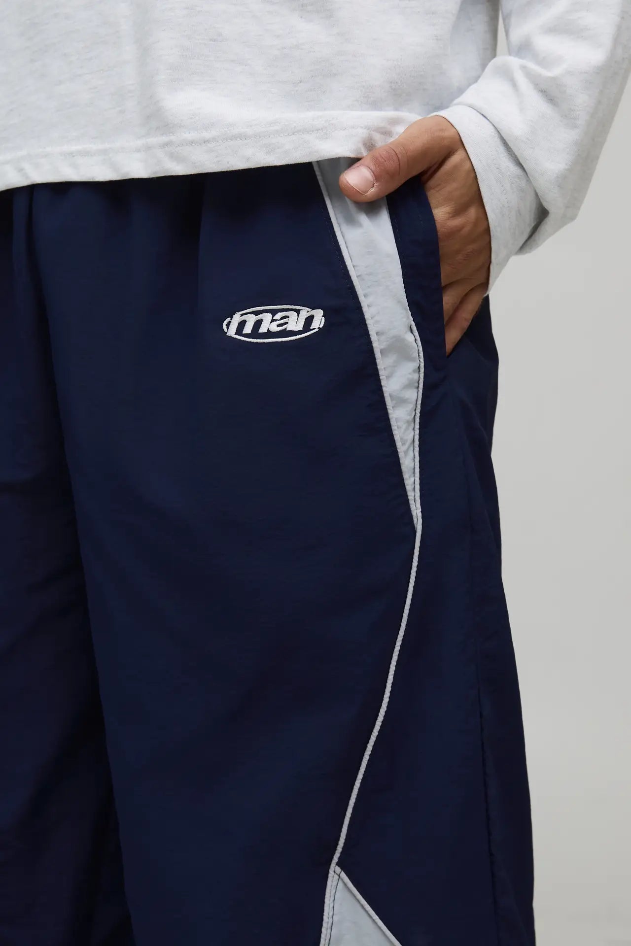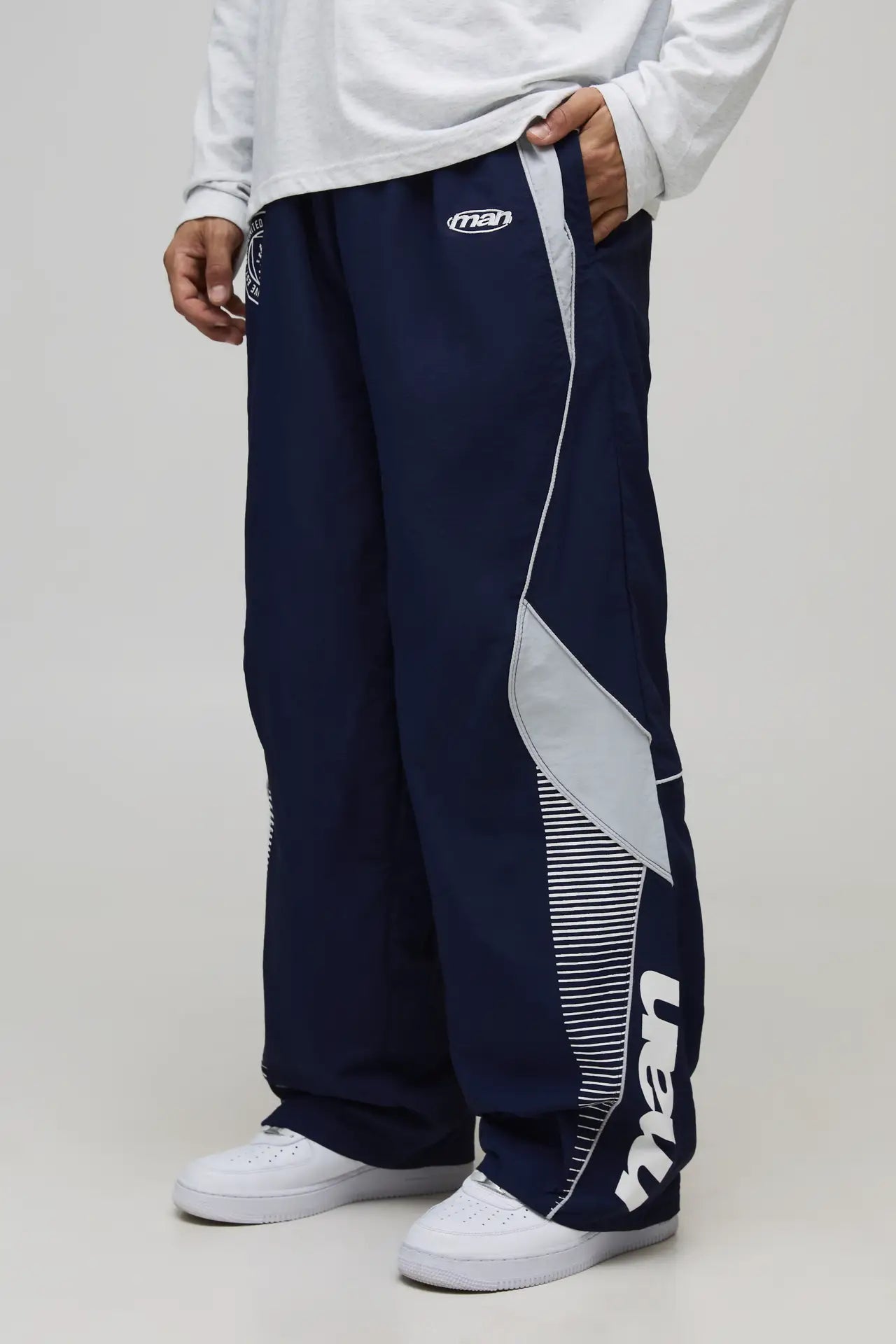 BAGGY ELASTICATED WAIST MOTO NYLON TROUSERS