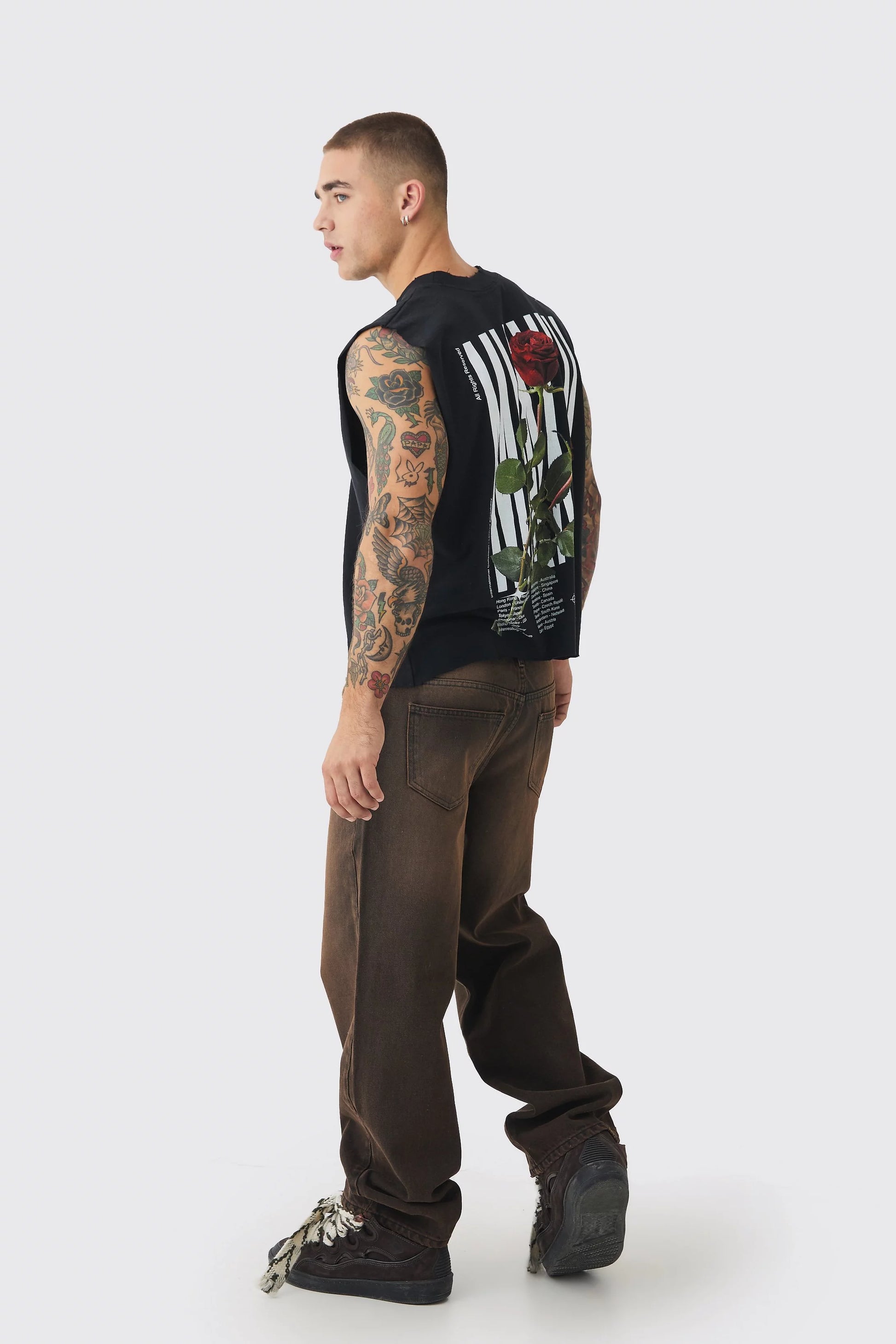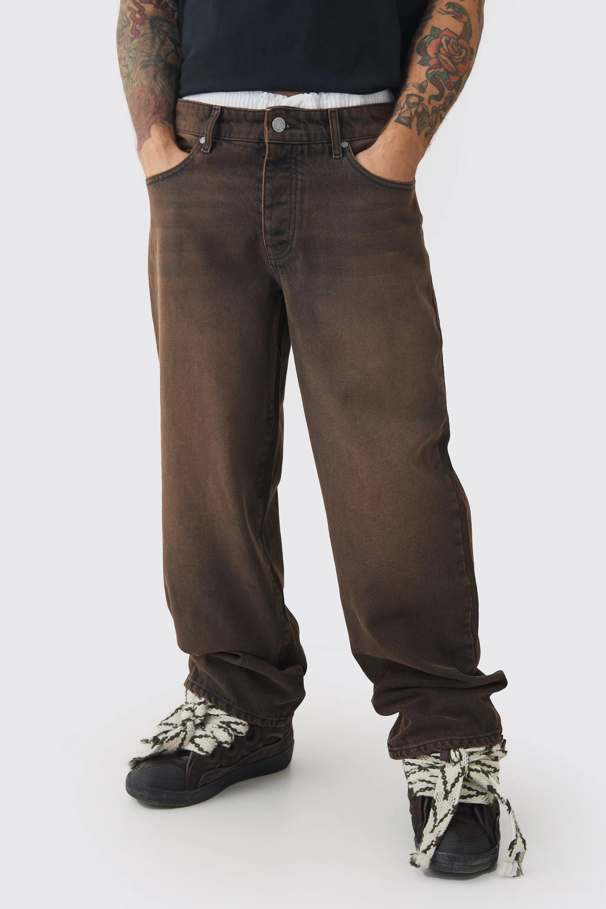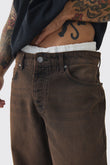 BAGGY RIGID DOUBLE WAISTBAND DENIM JEANS IN BROWN