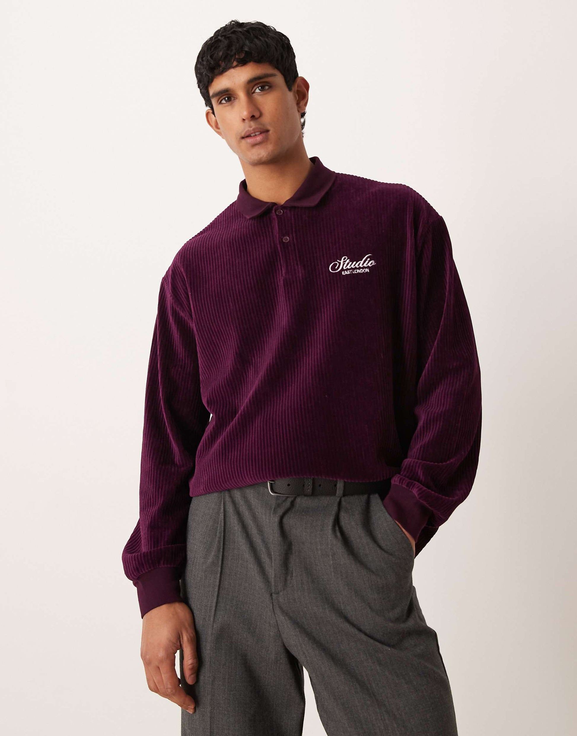 heavyweight long sleeve polo rib knit