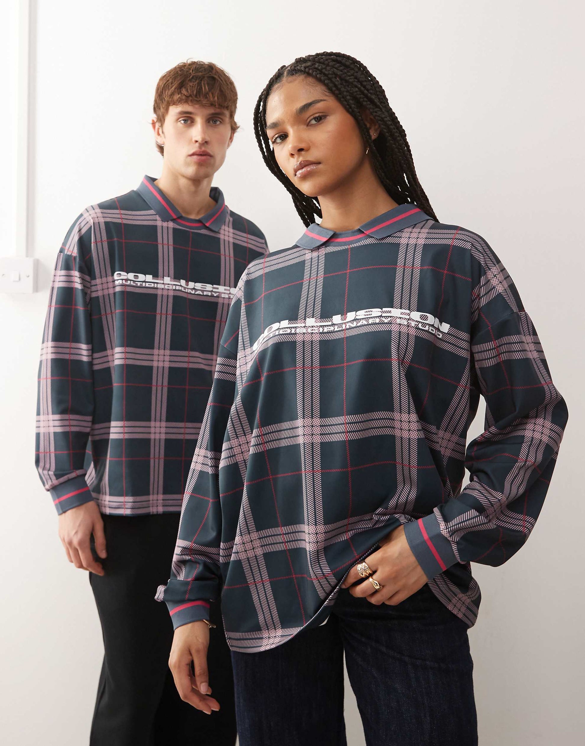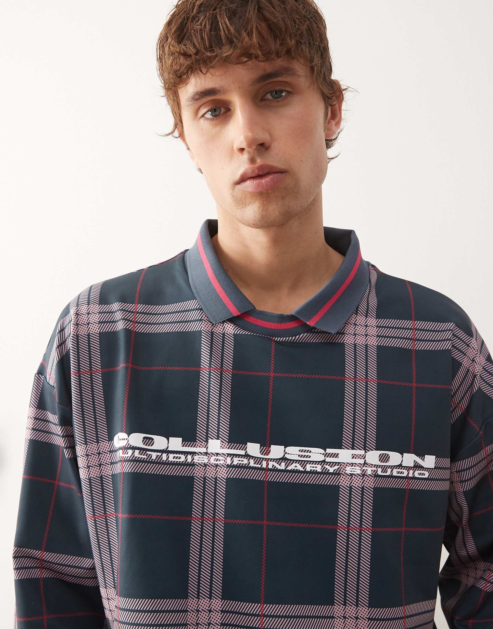 long sleeve checked football polo