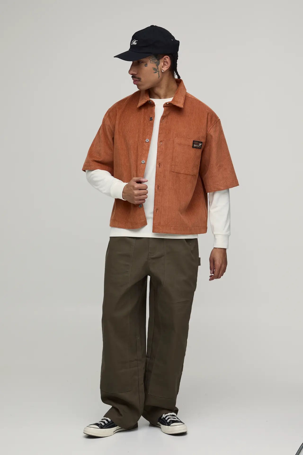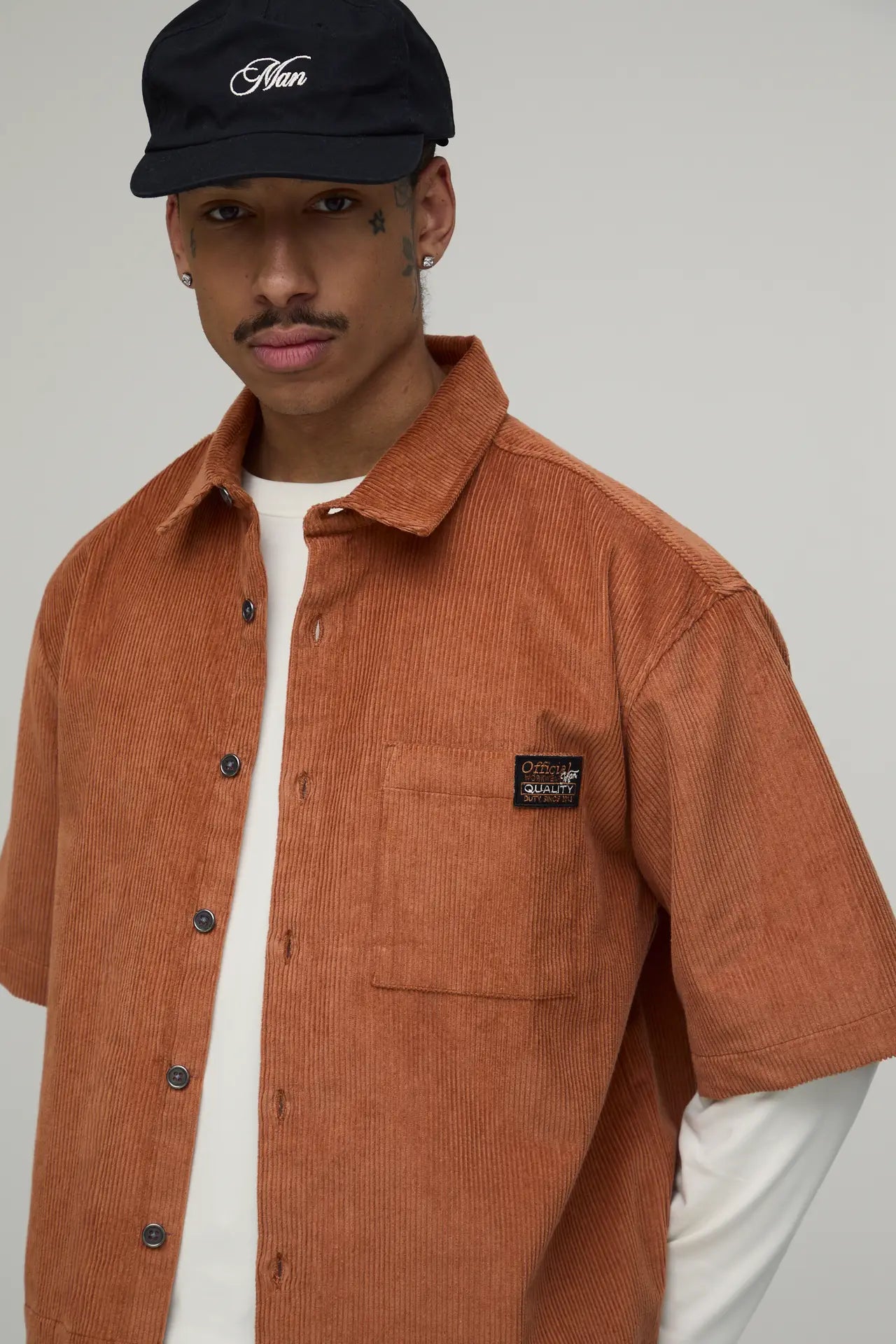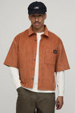 OVERSIZED BOXY HALF SLEEVE CORD WOVEN TAB SHIRT