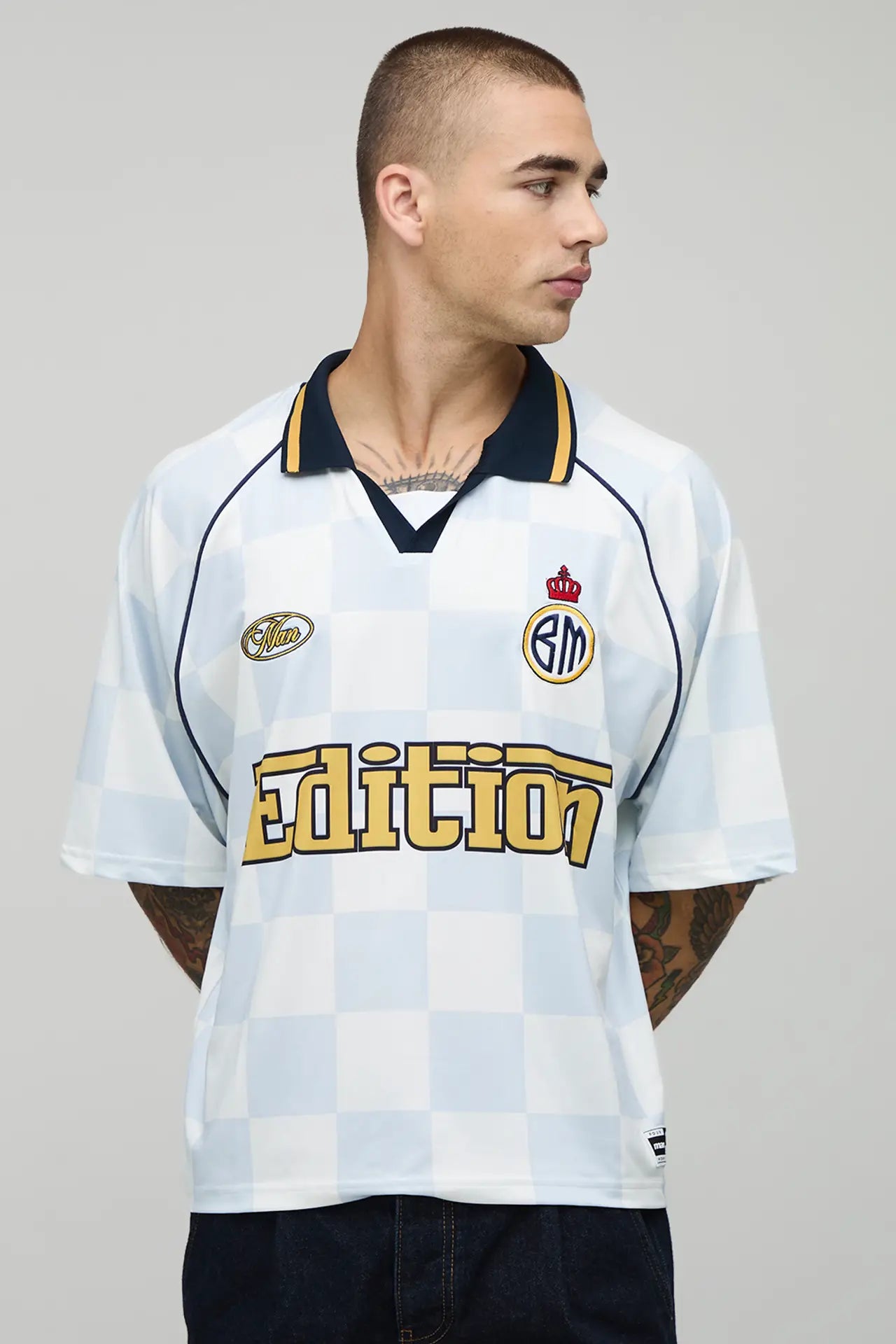 OVERSIZED BOXY RAGLAN EDITION CHEQUERED SPORTS TOP