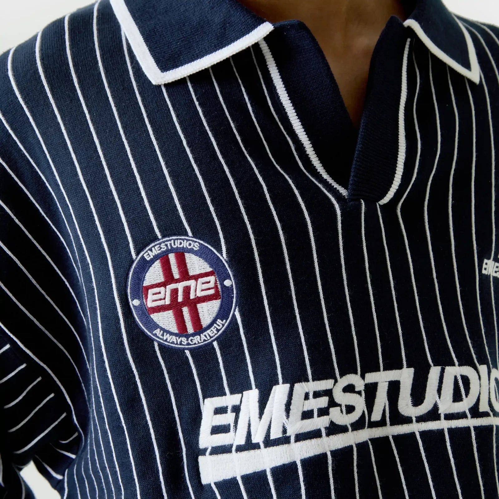 Pinstripe Navy knit polo