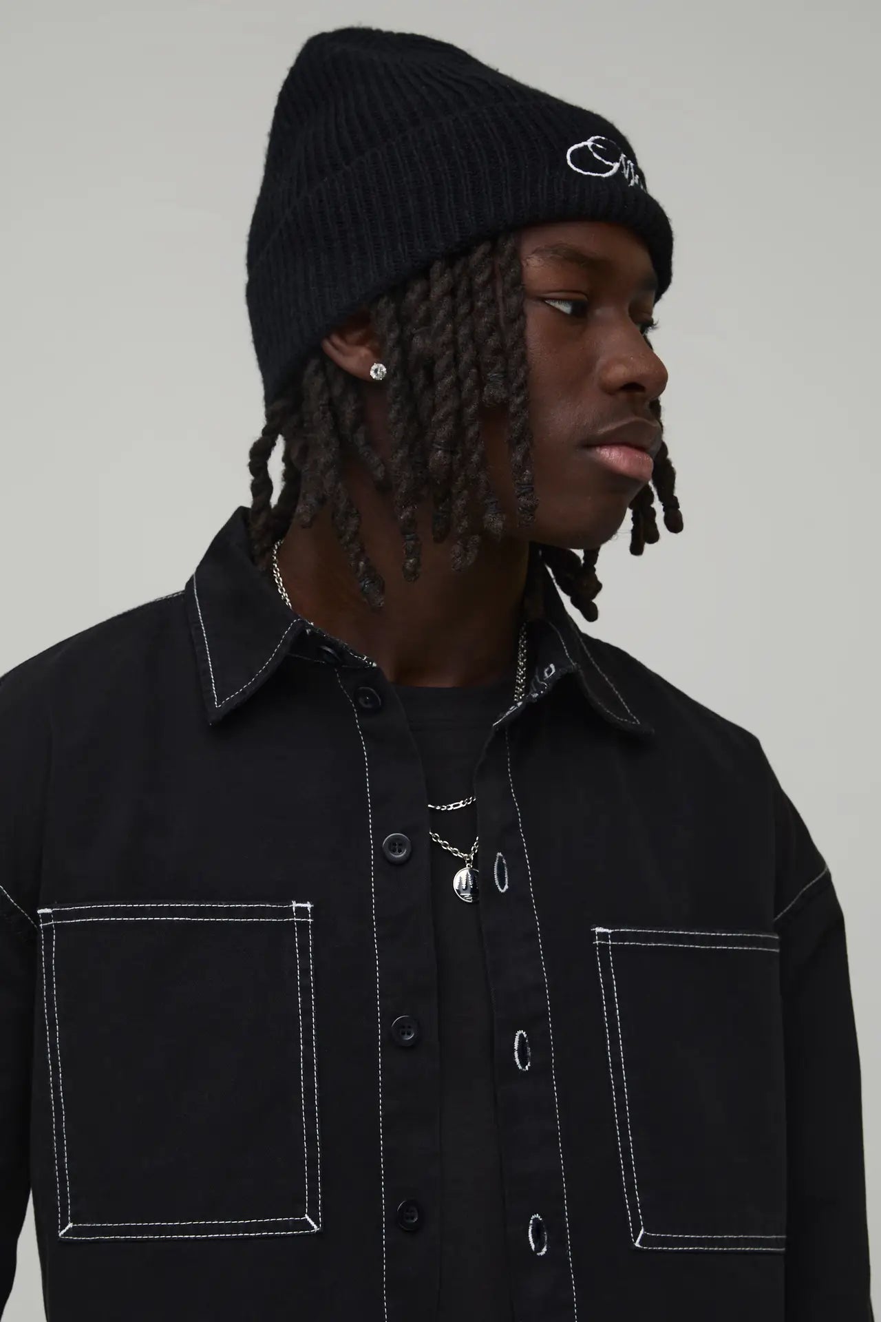REGULAR FIT CONTRAST STITCH TWILL BOXY OVERSHIRT